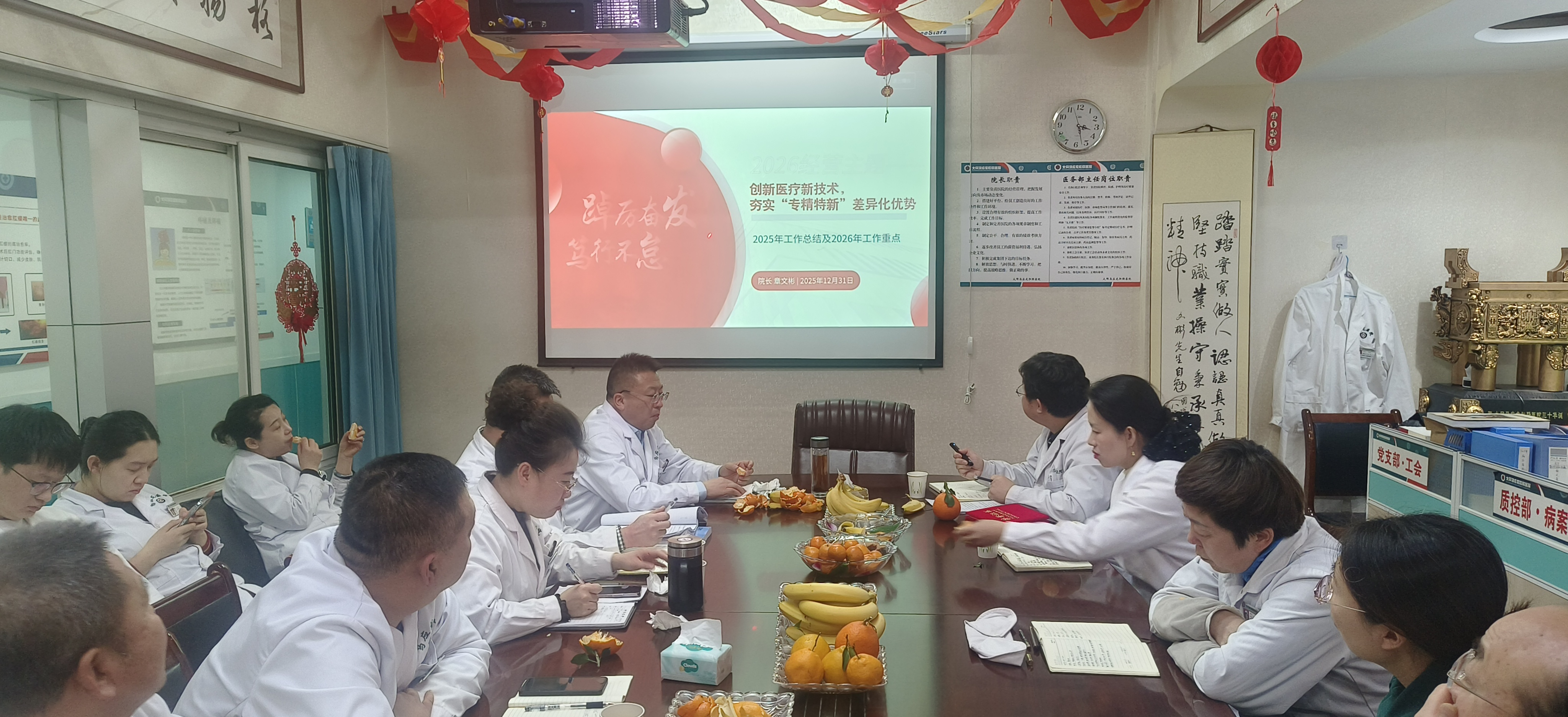 紧接着,王永杰院长代章文彬院长作《2025年工作总结及2026年工作重点》专题PPT报告。报告中明确提出,我院2026年经营主题为“创新医疗新技术,夯实‘专精特新’差异化优势”。文中章文彬院长在送上诚挚新年祝福后,围绕六大工作重点进行了系统部署与强调。